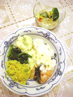 ちょっと苦味の有る小松菜に、アーモンドのスライス付き。